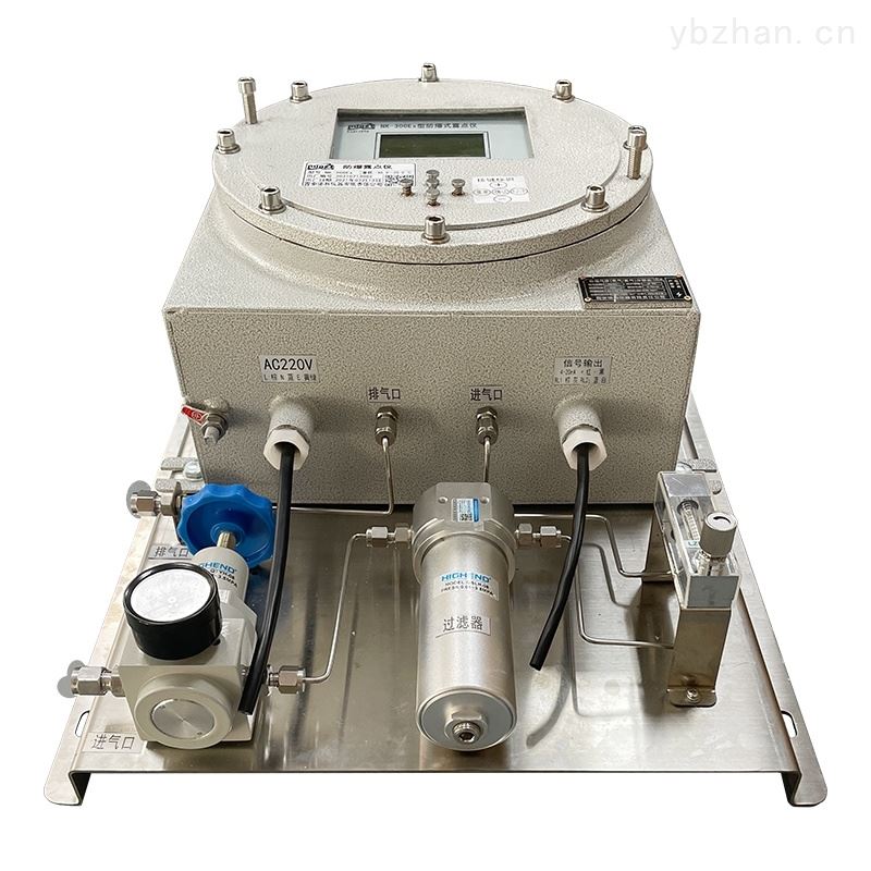 利用氧氣的體積磁化率比一般氣體高得多,在磁場(chǎng)中具有*的順磁特性的原理制成的一種測(cè)量氣體中含氧量的分析儀器。順磁氧分析儀傳感器密閉的氣室里裝有兩對(duì)不均勻磁場(chǎng)的磁極,它們的磁場(chǎng)強(qiáng)度梯度正好相反。兩個(gè)空心球組成啞鈴狀,中間用金屬絲將其懸掛,啞鈴球外是反饋線圈。在啞鈴和金屬絲的交點(diǎn)處裝有一個(gè)平面反射鏡, 光源發(fā)出的光照射在反射鏡上同時(shí)被反射到光電元件上。當(dāng)被測(cè)樣品進(jìn)入測(cè)量室時(shí),兩個(gè)空心球被氣體包圍,由于氧的順磁性產(chǎn)生一個(gè)扭力作用在啞鈴上,這樣就使啞鈴產(chǎn)生了偏轉(zhuǎn),反射光就發(fā)生偏轉(zhuǎn),光檢測(cè)器接受的光能量也隨之發(fā)生變化。于是輸出一個(gè)毫伏電壓信號(hào),經(jīng)反饋放大后作為儀表的輸出。 啞鈴球外部的反饋線圈接受輸出電流的反饋,對(duì)啞鈴產(chǎn)生附加的復(fù)位力矩,使啞鈴球回到初始位置。